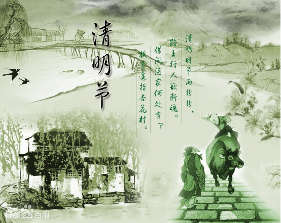 清明節(jié)又叫踏青節(jié),在仲春與暮春之交,也就是冬至后的第108天。是中國(guó)傳統(tǒng)節(jié)日,也是重要的祭祀節(jié)日之一,是祭祖和掃墓的日子[1]  。中國(guó)漢族傳統(tǒng)的清明節(jié)大約始于周代,距今已有二千五百多年的歷史。受漢族文化的影響,中國(guó)的滿族、赫哲族、壯族、鄂倫春族、侗族、土家族、苗族、瑤族、黎族、水族、京族、羌族等24個(gè)少數(shù)民族,也都有過清明節(jié)的習(xí)俗。掃墓祭祖、踏青郊游是基本主題。