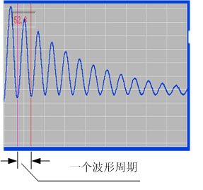 下圖就是對(duì)某一條故障電纜進(jìn)行沖閃測(cè)試得到的波形,沖閃波形上沒有絕對(duì)的電纜始端,從波形的宏觀周期上面找到一個(gè)完整的周期,測(cè)量一個(gè)周期的距離就是電纜的故障長(zhǎng)度D。
