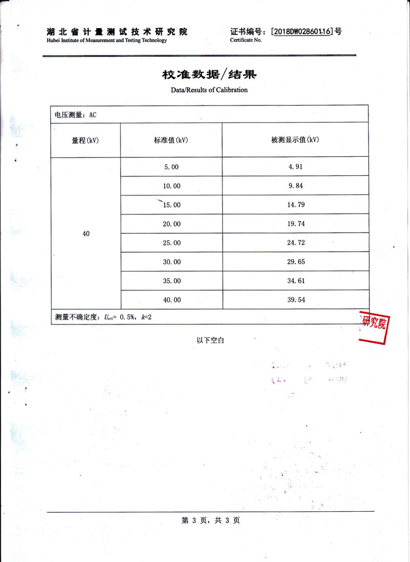測量電壓范圍 | 0 - 40kV(特殊電壓可定制) |